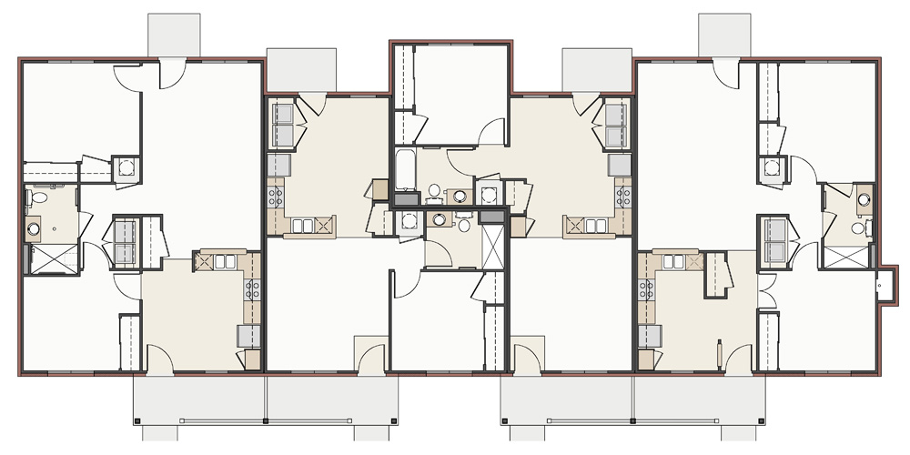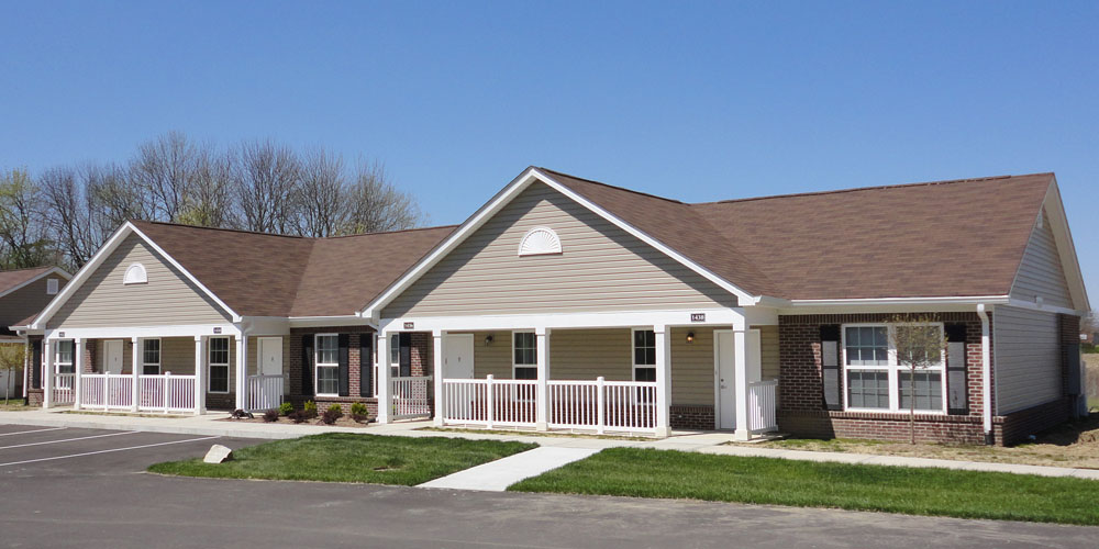 A low-income seniors housing community funded with IHCDA credits. The buildings are designed and constructed with special Energy Star features. The Phase 1 project has a 42-unit Main Building and five 4-plex Ranch Buildings.